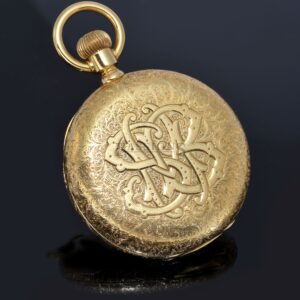 C.1886 Vacheron & Constantin 51mm Exquisite engraved Hunter case pocket watch white enamel dial in 120g 18KRG. Archive cert