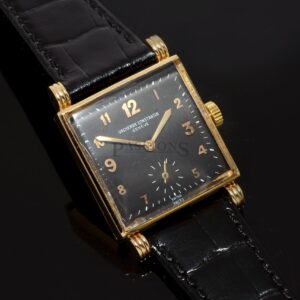 C.1937 Vacheron Constantin Rectangular Tank with fancy lugs manual winding in 18KYG. Archive cert