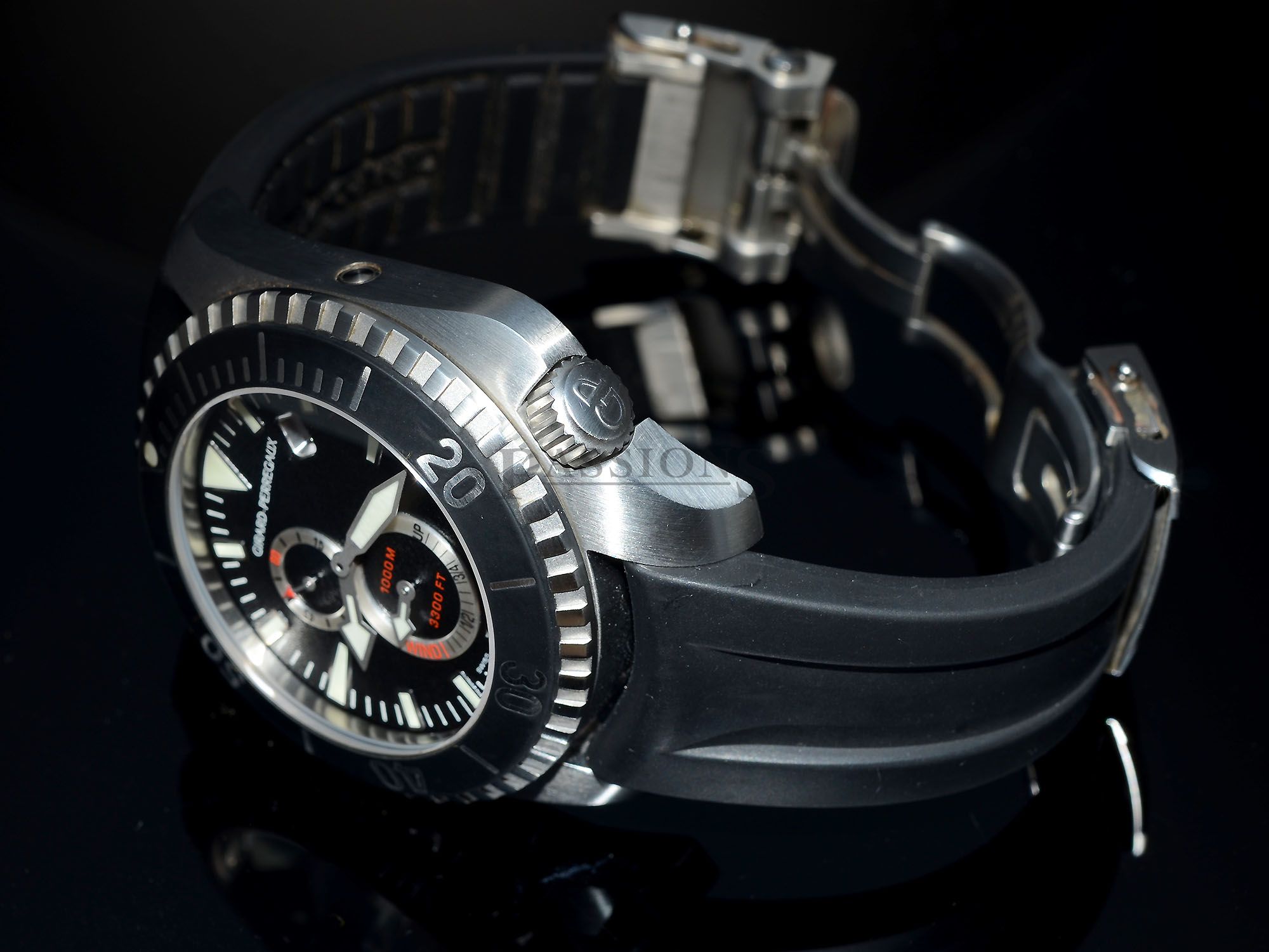 At our asking price, this GP professional diver’s watch is a genuine bargain as a 2nd-hand piece was trading for well over S$7K in the past. The rubber strap is not long and a new piece must be ordered from factory for bigger wrists that the buyer must bear.