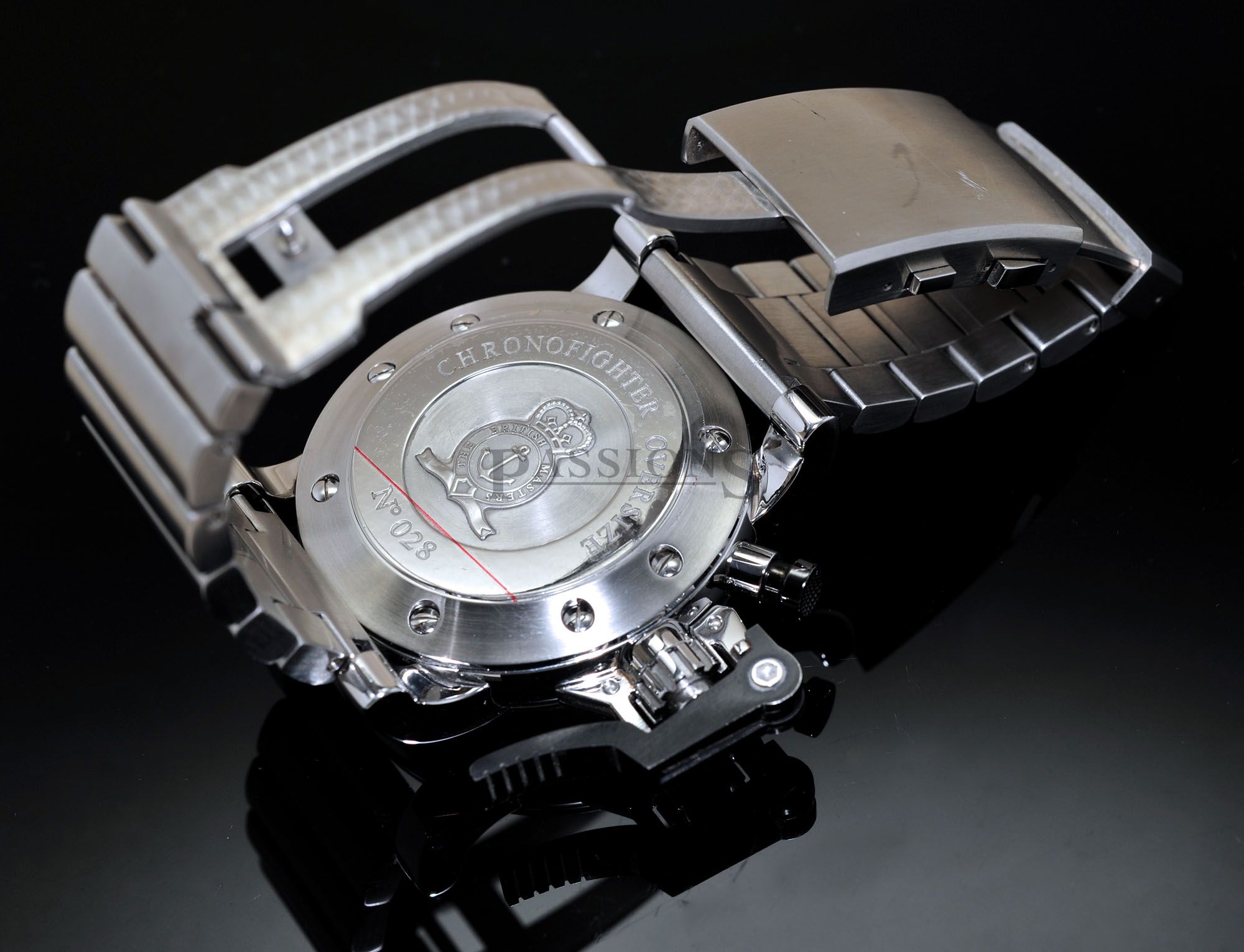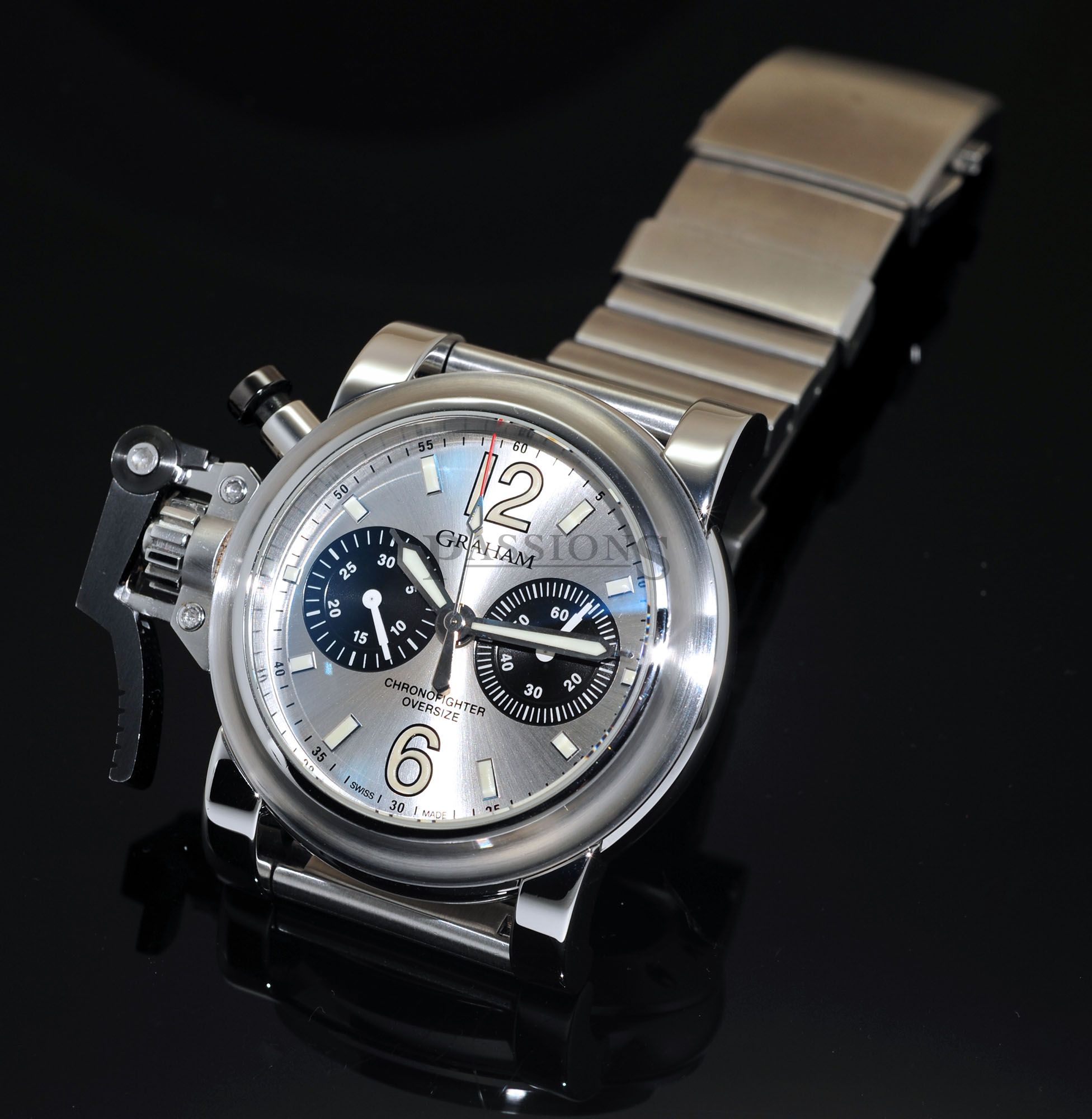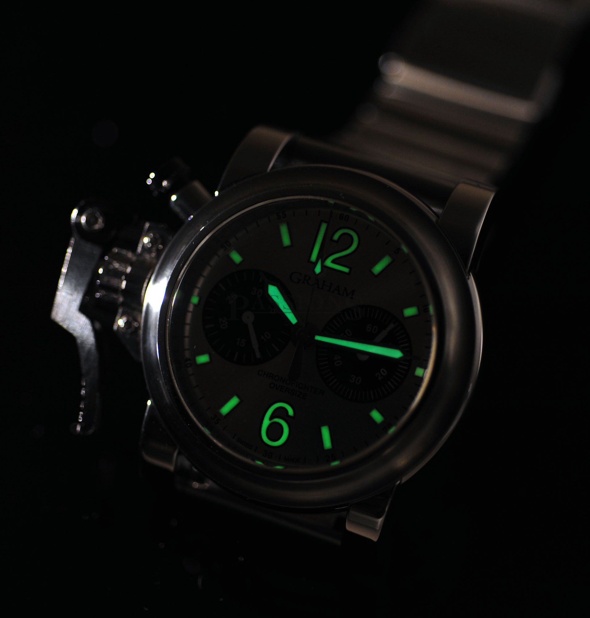 One owner’s watch from new but accessories have been lost over time. This Graham Oversized Chronofighter has just been polished to factory specs & has a very nice serial number 028 to it. The large 47mm case is a prominent watch & the oversized lever is an icon from the brand. Case is in tip top condition without any major dents but do expect miniscule wear to the edges of the black PVD steel lever as seen and again, no dents nor deep gashes that’s common to large watches like this which proves that the owner was careful with this watch.