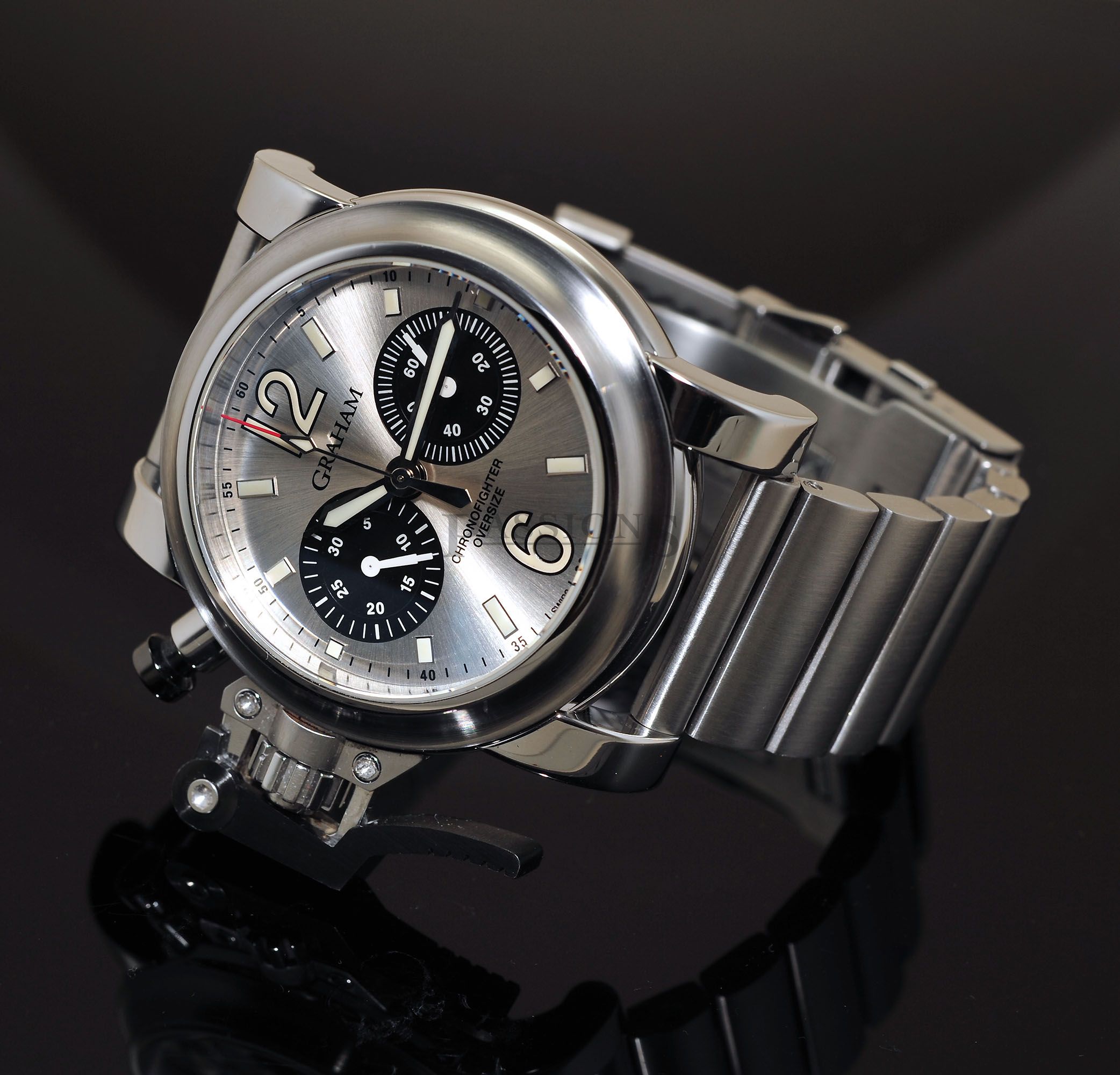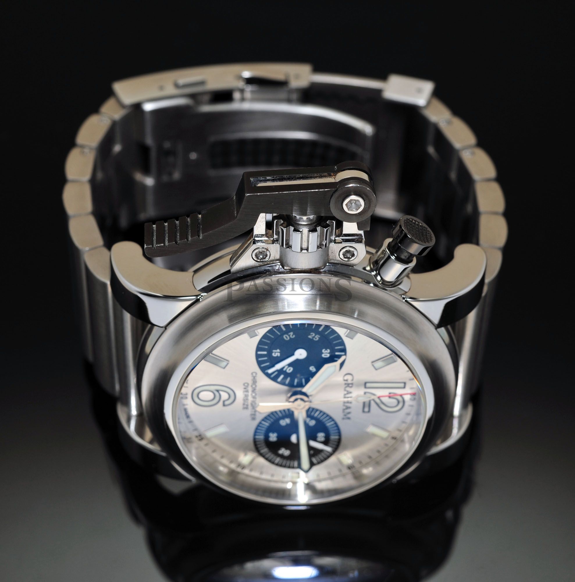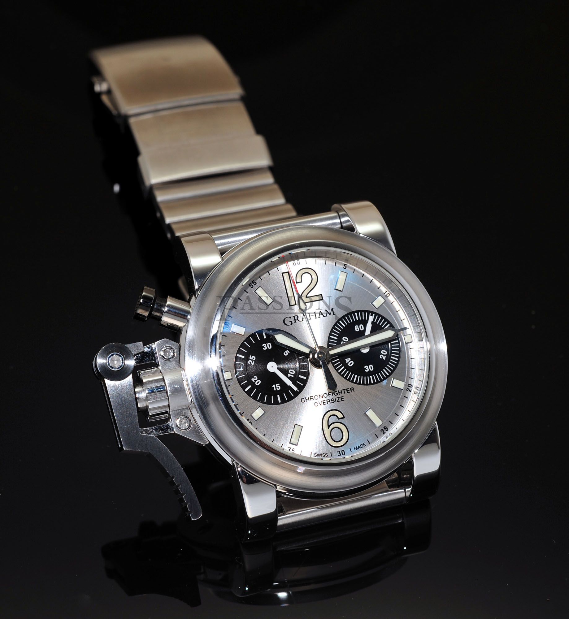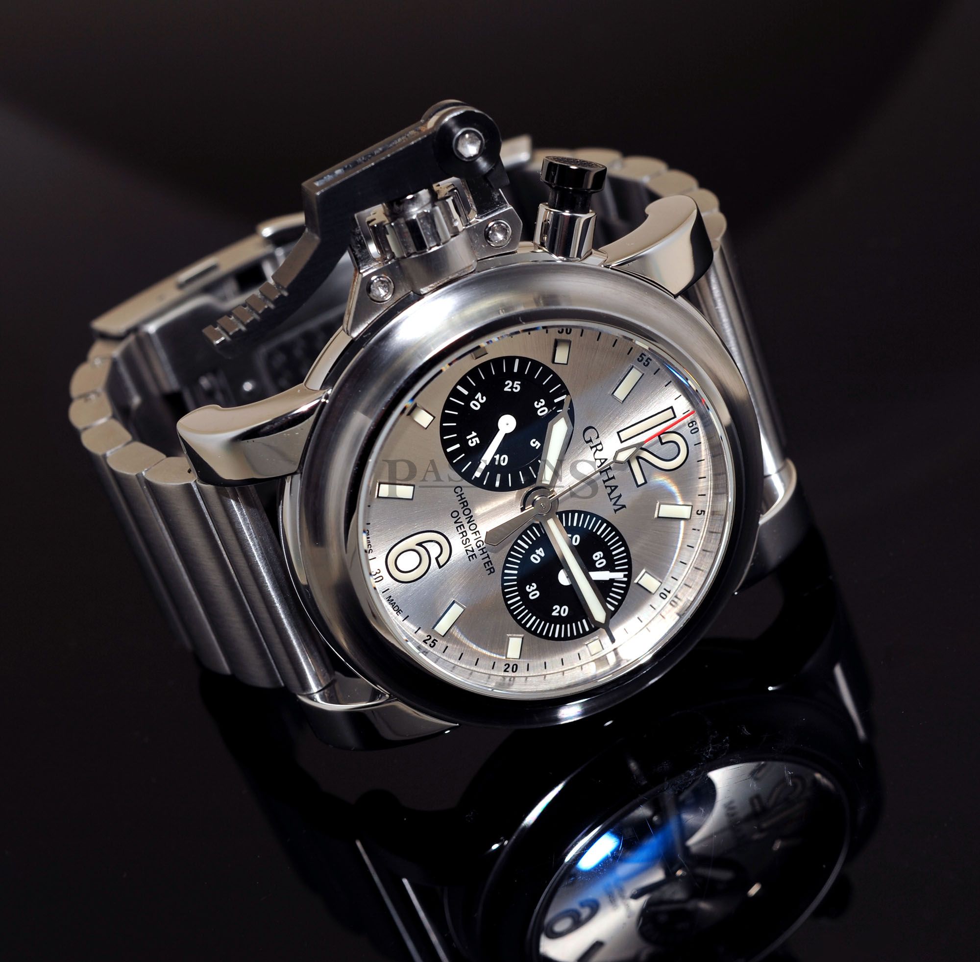 One owner’s watch from new but accessories have been lost over time. This Graham Oversized Chronofighter has just been polished to factory specs & has a very nice serial number 028 to it. The large 47mm case is a prominent watch & the oversized lever is an icon from the brand. Case is in tip top condition without any major dents but do expect miniscule wear to the edges of the black PVD steel lever as seen and again, no dents nor deep gashes that’s common to large watches like this which proves that the owner was careful with this watch.