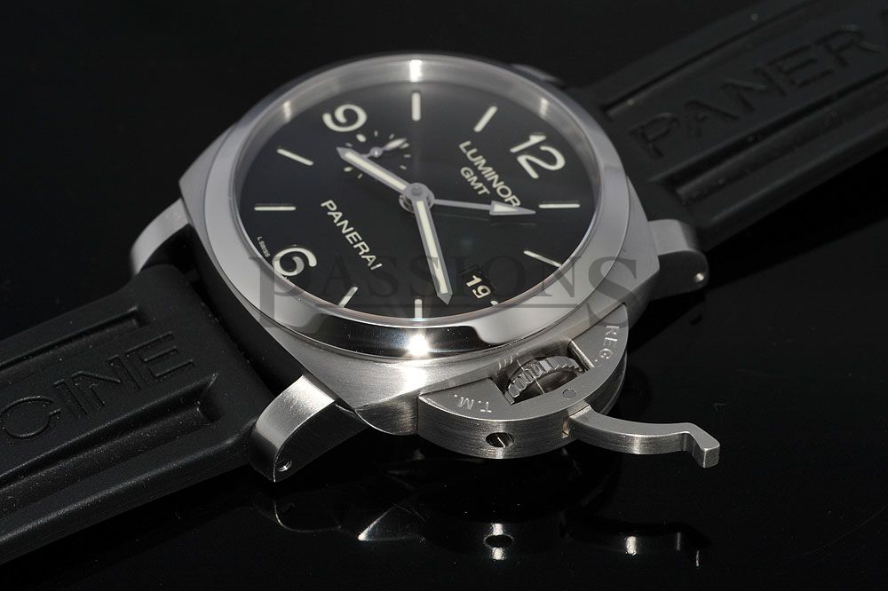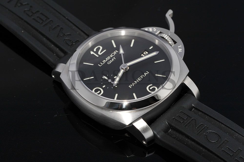 This Pam00320 is a discontinued model under the 1950 Luminor collection that features an in-house manufacture movement with 3 days power reserve and a dual-time function. The power reserve indicator is on the rear of the watch and can be seen under the rotor plate while an arrow tipped hand serves as the second time zone indicator. A very popular and practical watch for travels and sports.