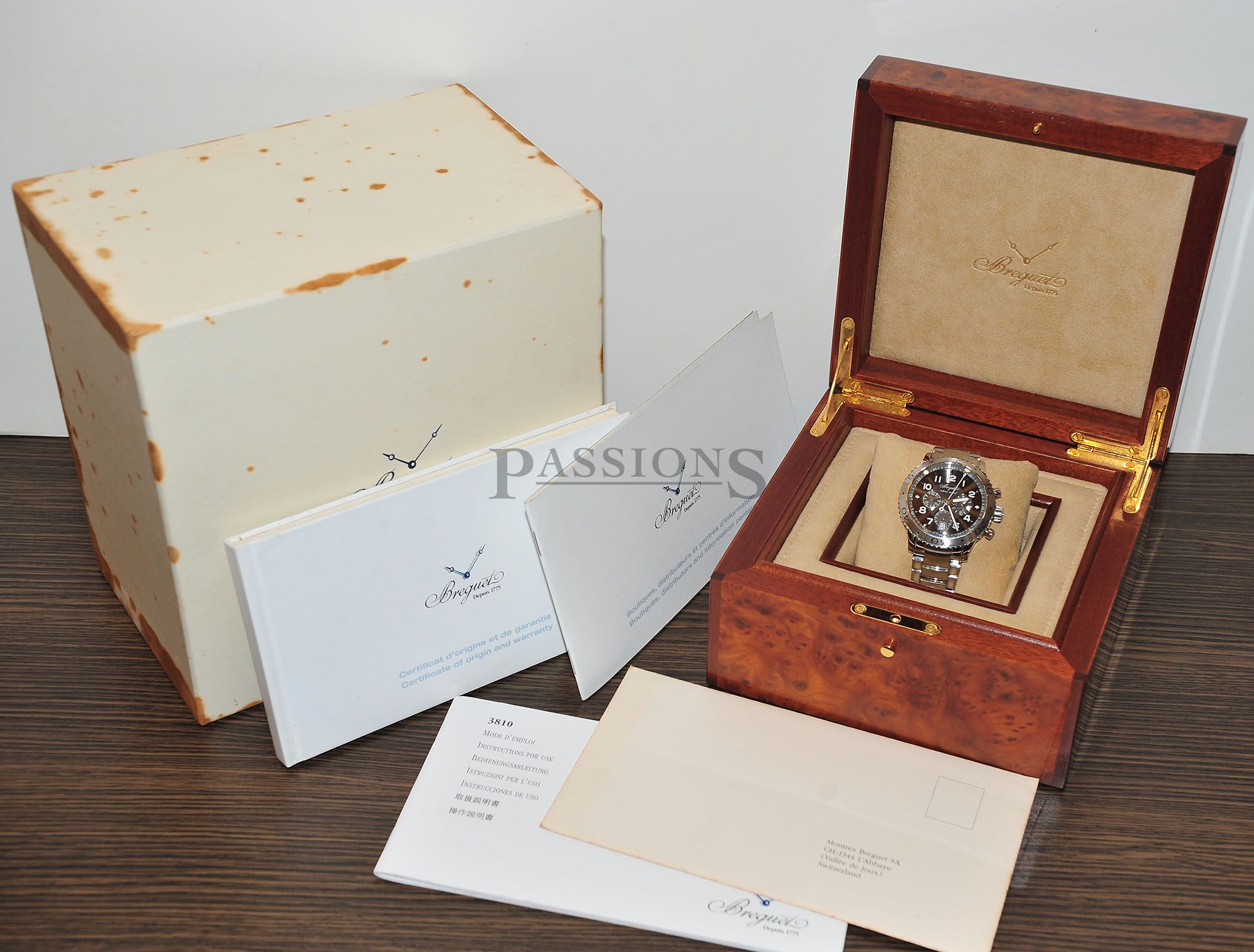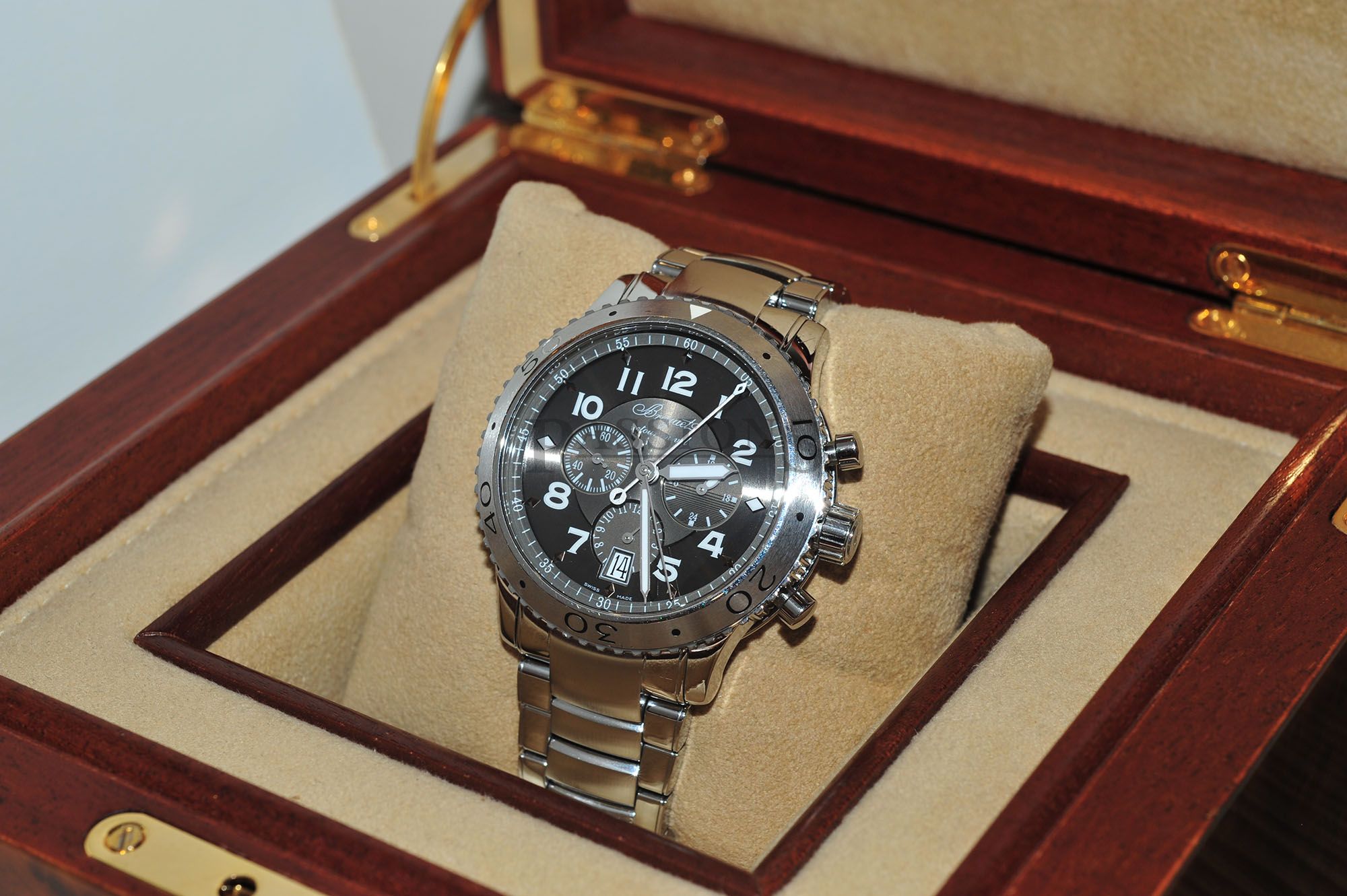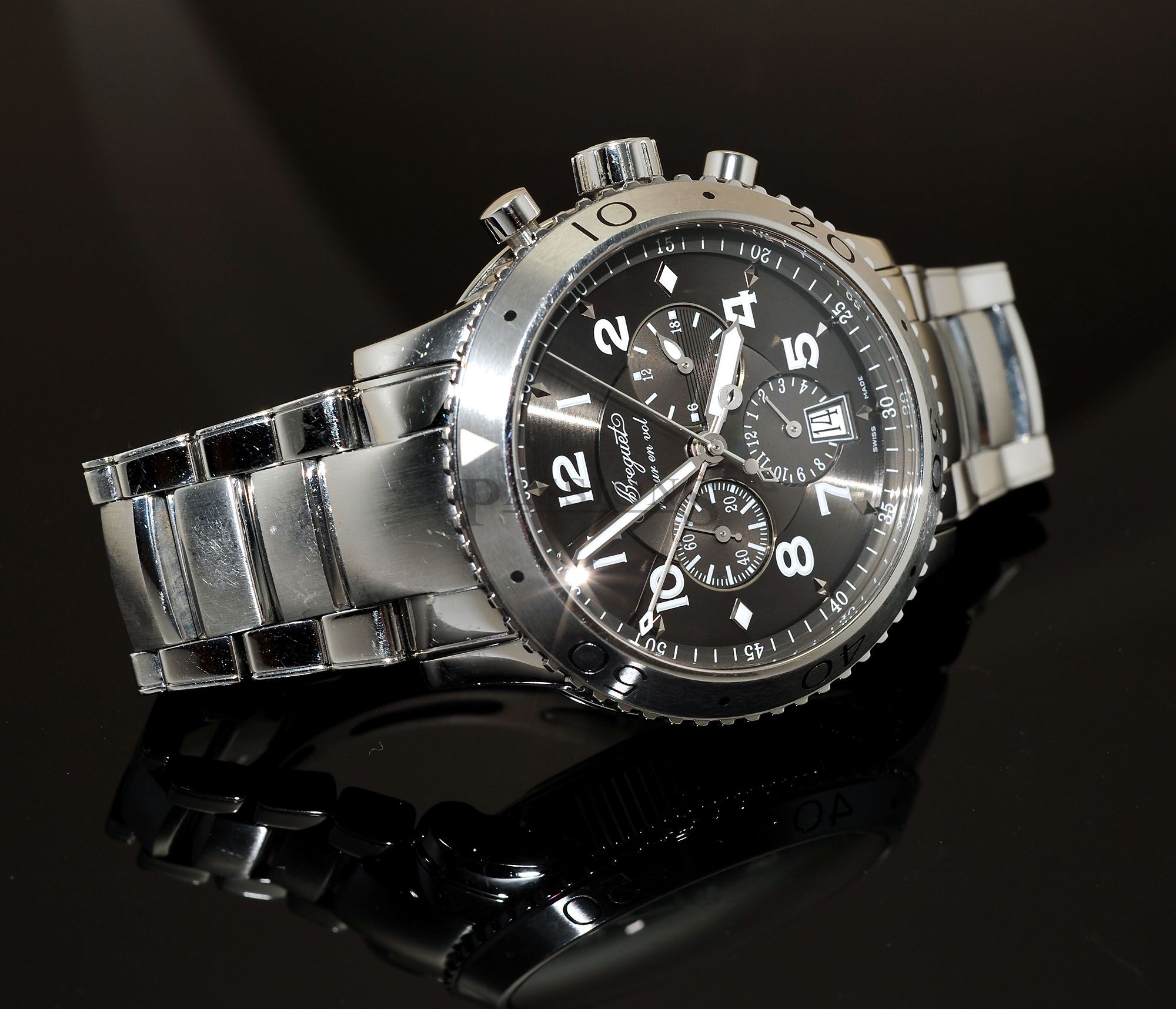 This Breguet Type Twenty-one better known as Type XXI is a single owner’s watch from new and never polished. We’ve done a full cleaning and functions checked. The watch shows usual surface wear but nothing major and a full polish is available upon request. This is a rare watch in the pre-owned market and seldom appears for sale so this represents a rare opportunity to acquire one direct from the first owner with very good savings.