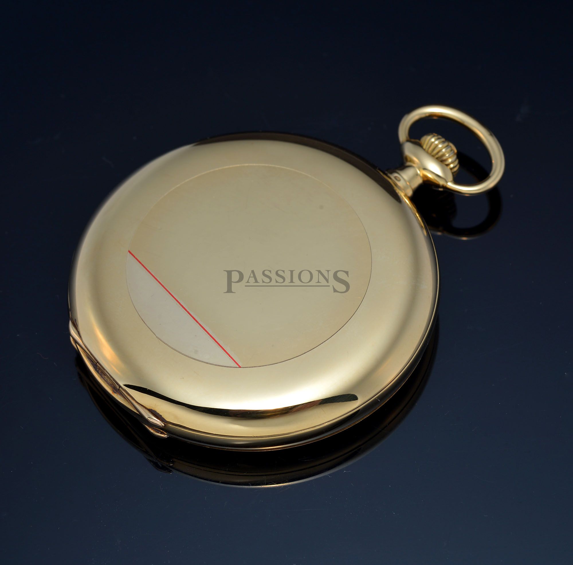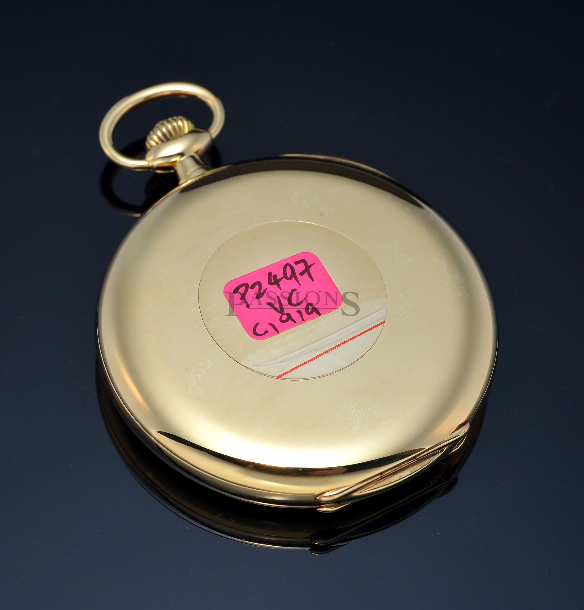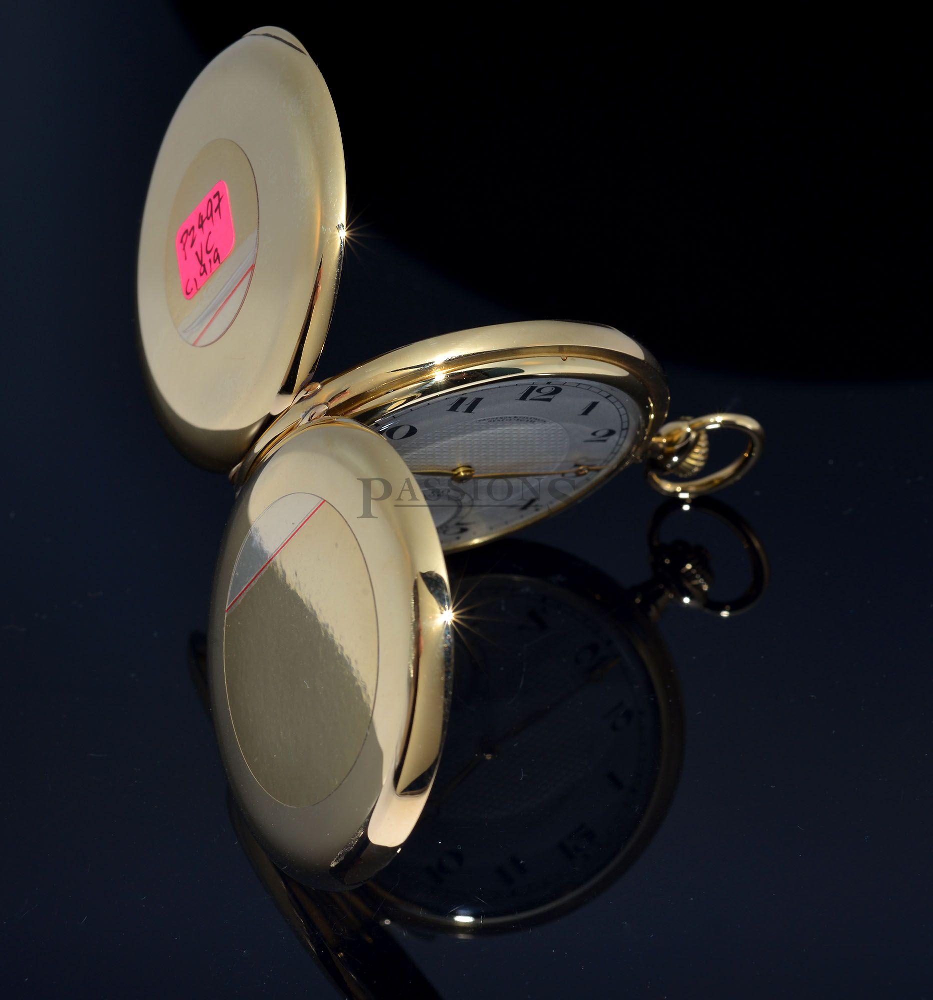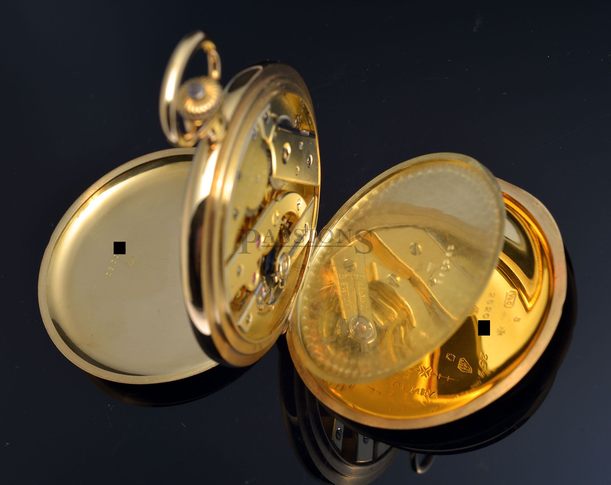 A handsome Vacheron & Constantin Geneve-Suisse Hunting cased pocket watch in heavy solid 18ct Yellow gold case. Fitted with a beautiful guilloche dial with hard enamelled markings. The markings on these dials were engraved plates with the black enamel paint filled in, fired, brushed & polished before being painted so they last almost an eternity except the silvered surface that ages over passing of time.