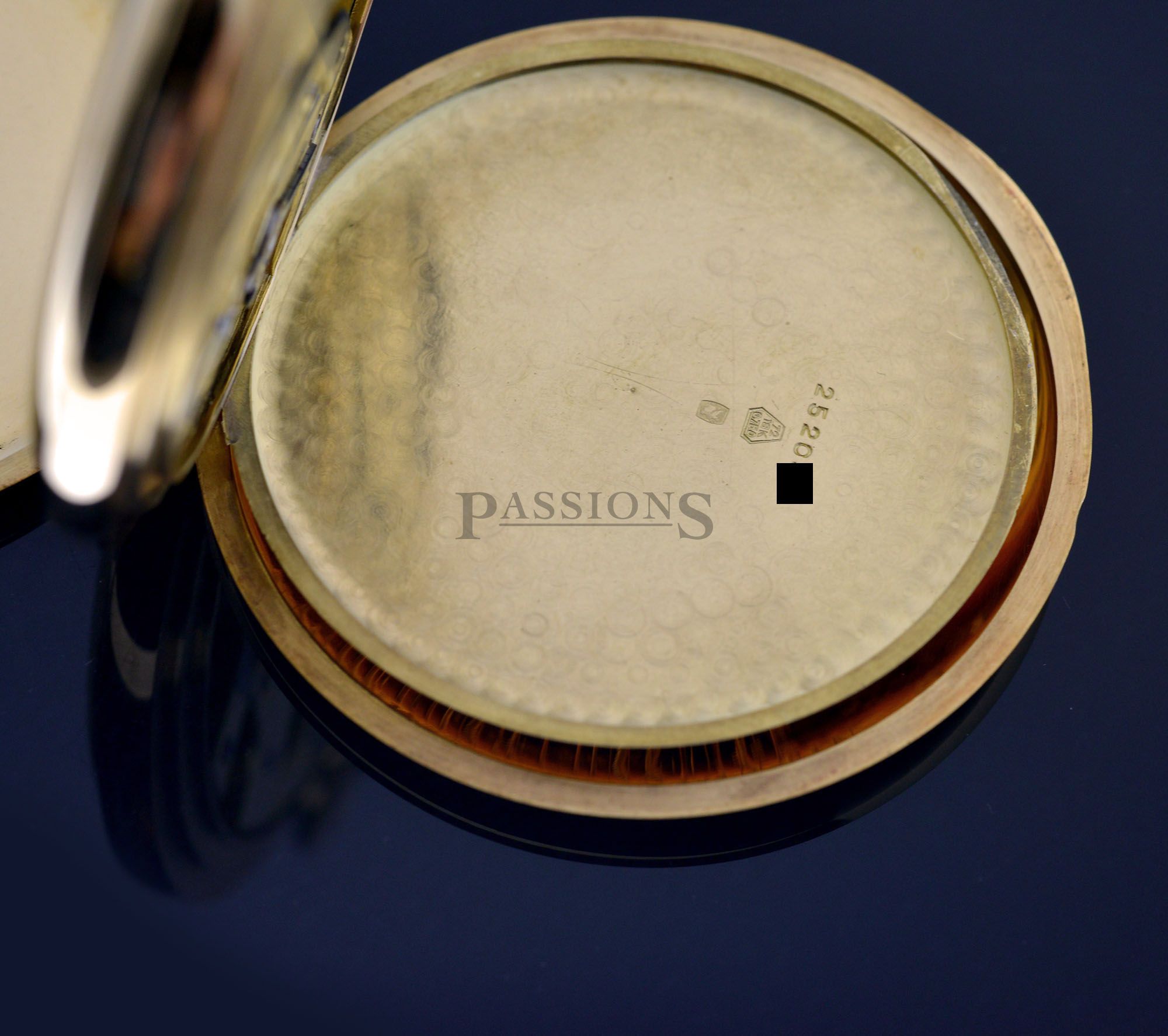 It takes about 12 winds on the crown to full power reserve & the large balance beats with a wonderful ticking sound. Case is in near mint condition throughout with no signs of serious dents nor marks and of course micro hairlines are easily picked up on polished surfaces. The bow (crown ring) and hinges remain tight and hunter cover springs open with vigour.