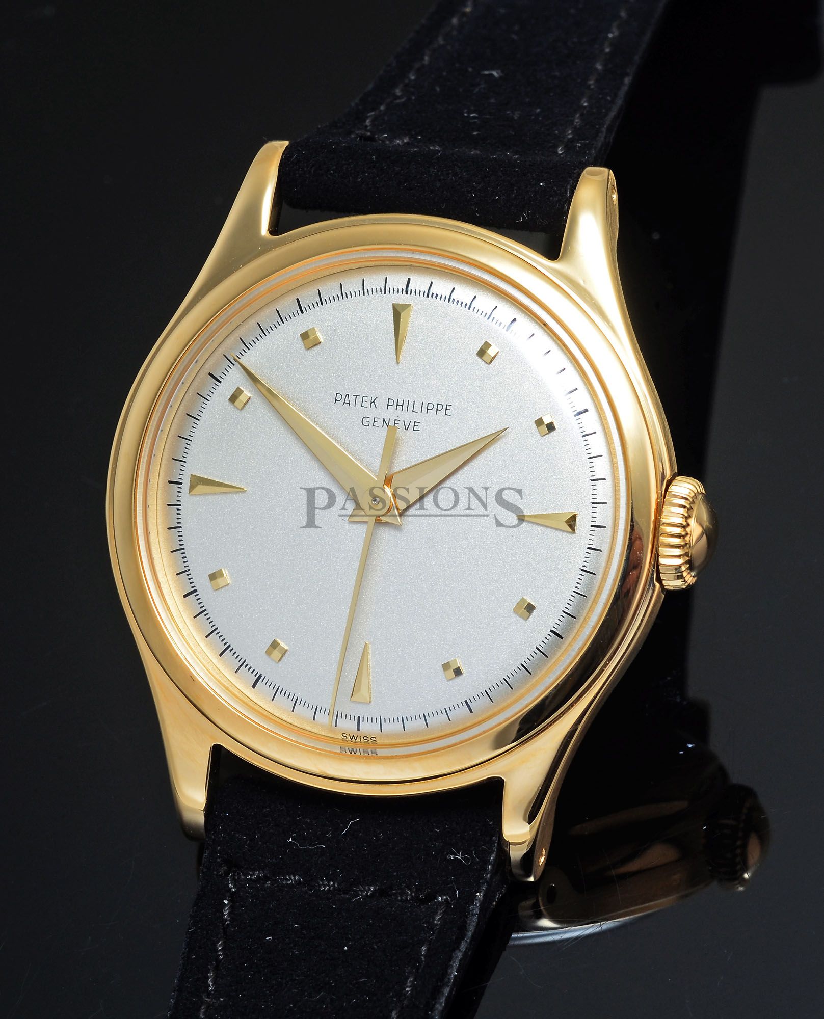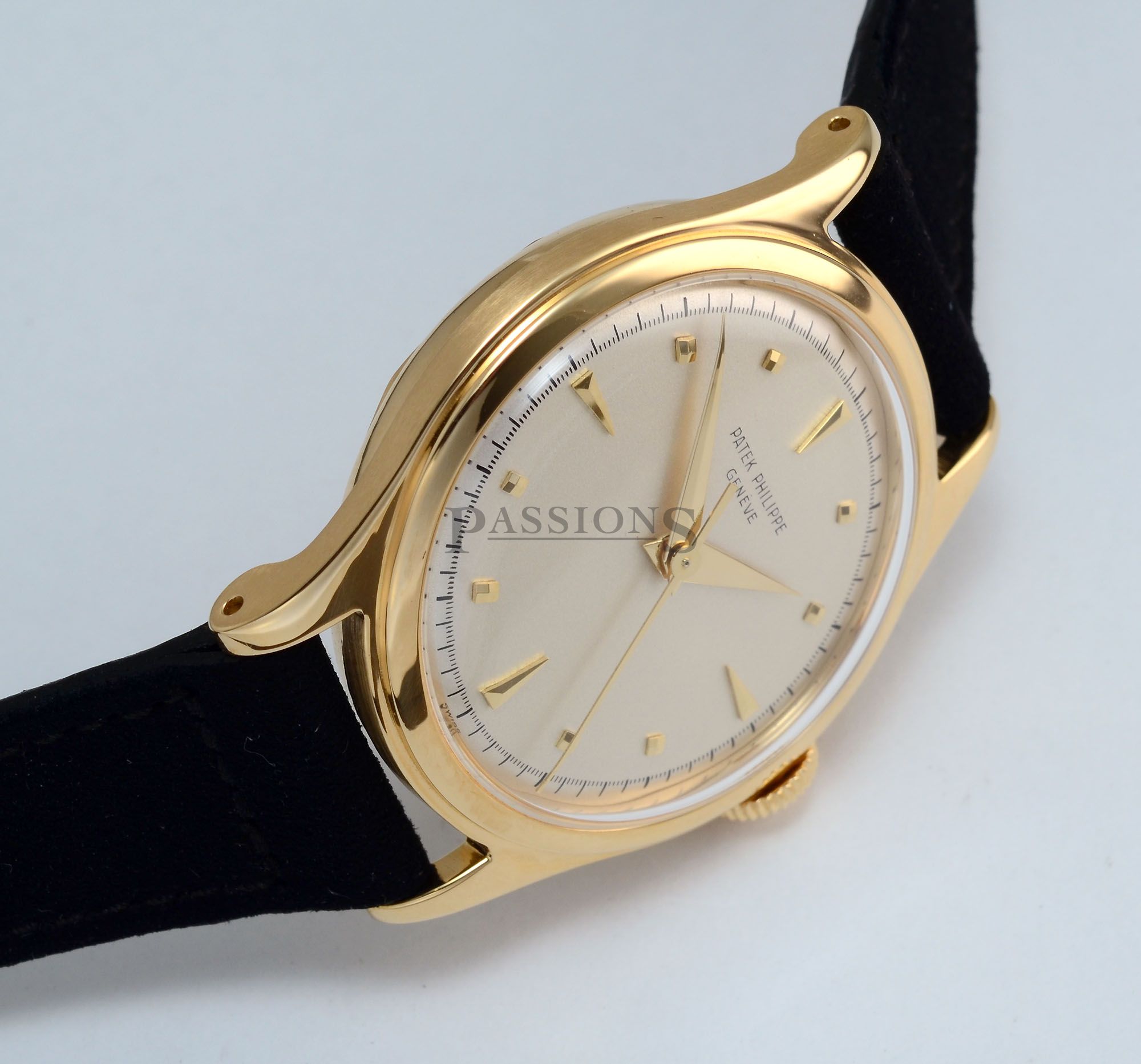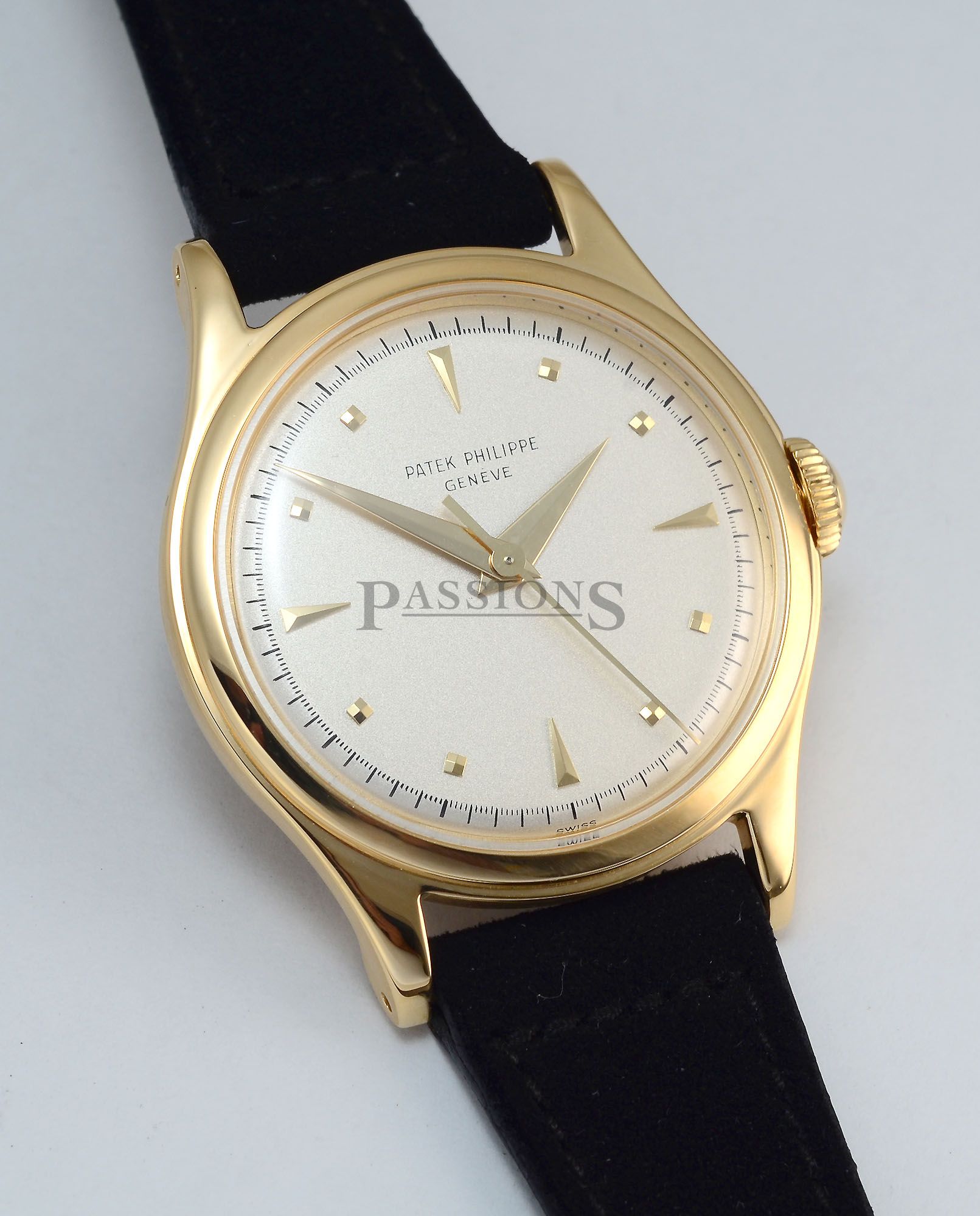 Vintage. Comes with a Patek shipping box & the factory “Extract from the Archives” certificate stating that this watch was manufactured in 1950 and sold on 7 July 1955.
