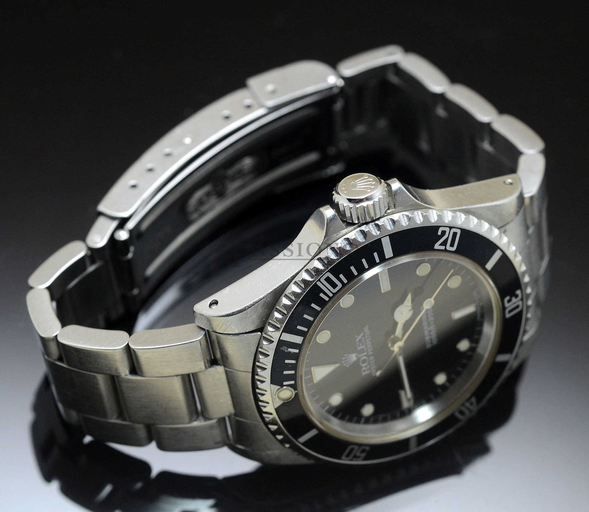 The case has numerous marks over the decades but nothing too serious, there’s a faint scratch line across the glass and we found 4 blemish spots on the black dial due to aging as seen under UV light and with a light striking from the side. These spottings are not readily visible and can only be visible under certain lighting conditions. Such a seasoned example attracts a peculiar buyer in search of something with authentic history and untouched over the past decades so it is of course unpolished and might have been serviced throughout the years but we don’t have a record on that. The bracelet remains reasonably tight which is a plus and bezel insert is of course commensurate with the rest of the watch.