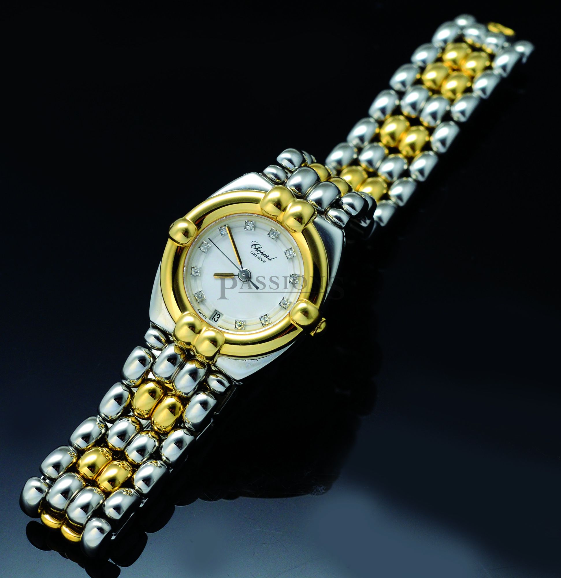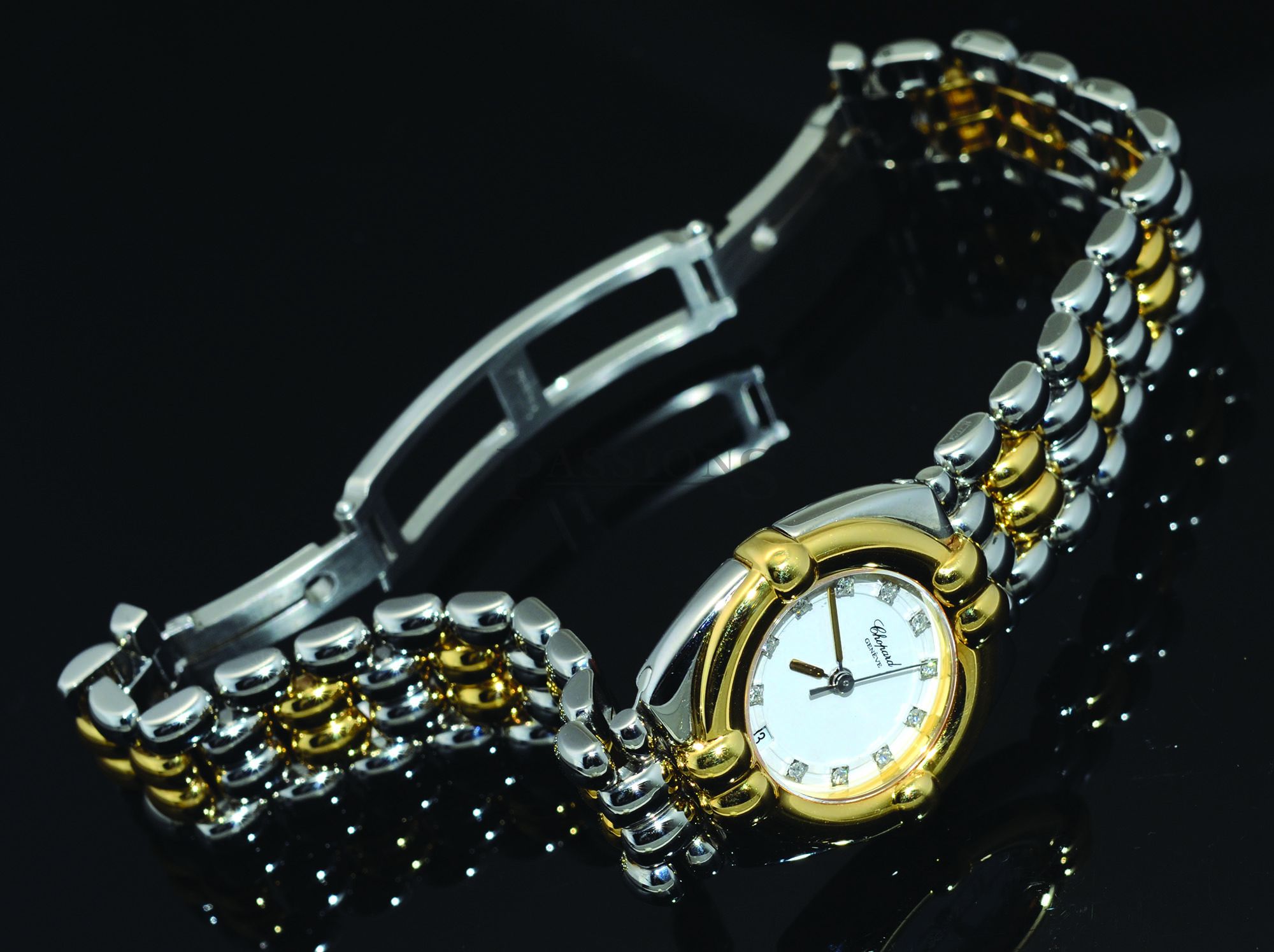 This Chopard lady’s Gstaad has just been polished to as new condition & is in perfect condition now. It offers date, sweep seconds hand so you can see that it moves and there are 11 diamonds on the white dial in a half-gold package. The watch is named after a popular ski resort in the southwest region of Switzerland.