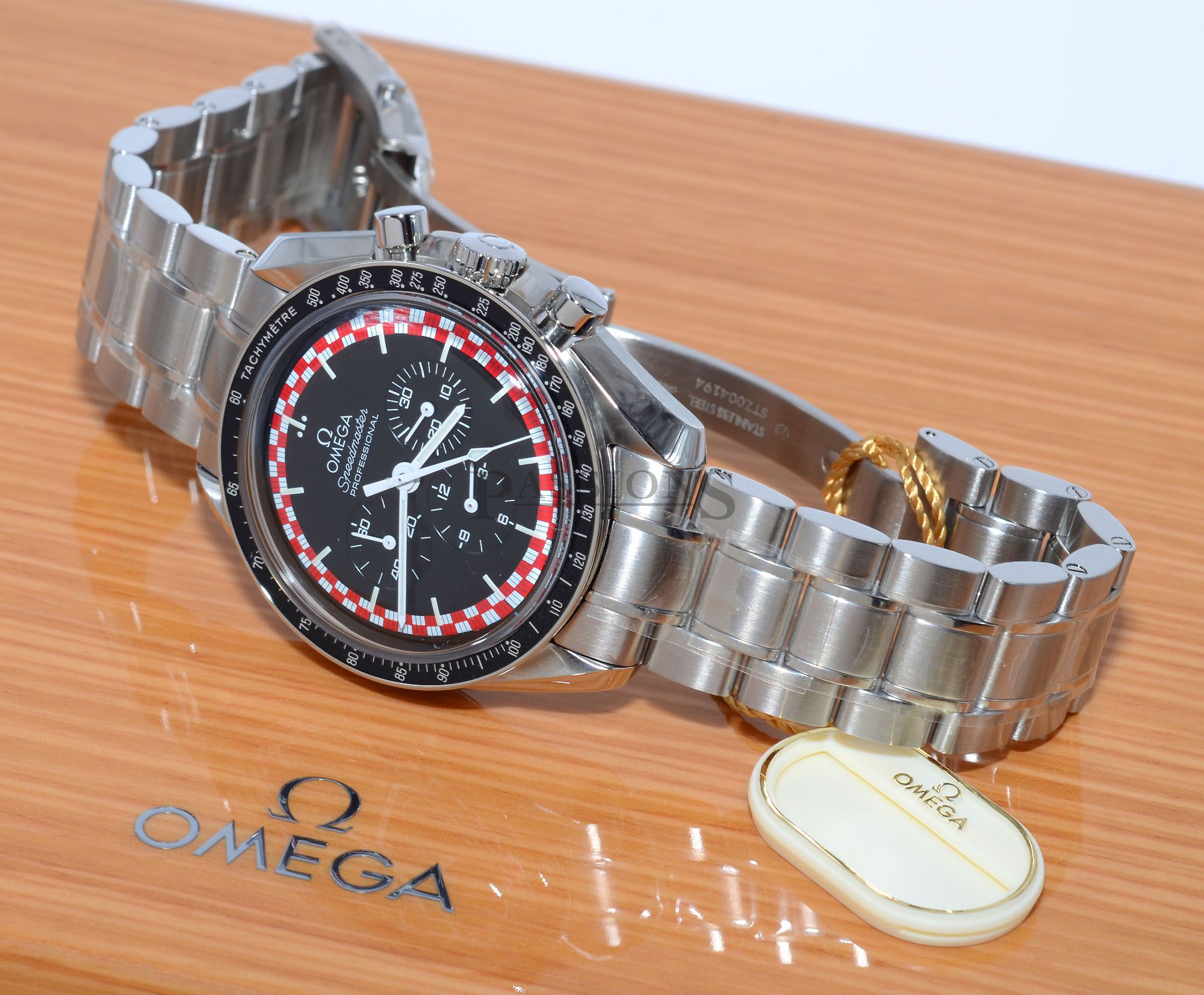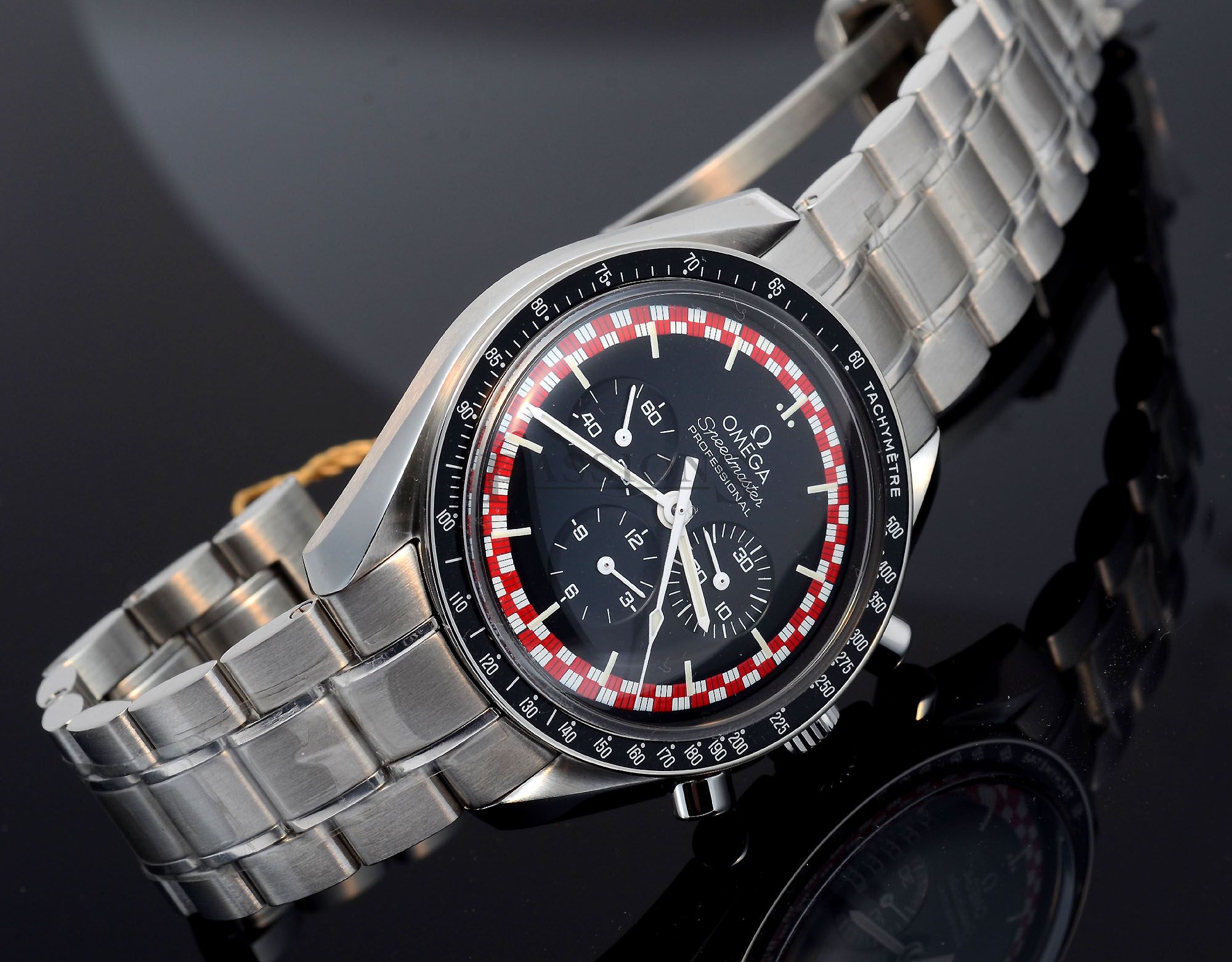 This particular Speedmaster Moonwatch was produced for only 2.5yrs till 2016, story has it that this was an unsuccessful project between Omega and Moulinsart SA, owner of Herge’s work on the cartoon The adventures of Tin Tin where in the 1950 Vol 16, Destination Moon (Les aventures de Tintin. Volume 16, Objectif Lune) would certainly be very relevant with the most famous Moonwatch. However, as fate has it that sometimes, an aborted project leads to a very desirable product by collectors and this is one of them. The chequered red and white pattern along the perimeter on the dial of this Omega makes it one of the most unmistakable feature that’s visible from afar.
