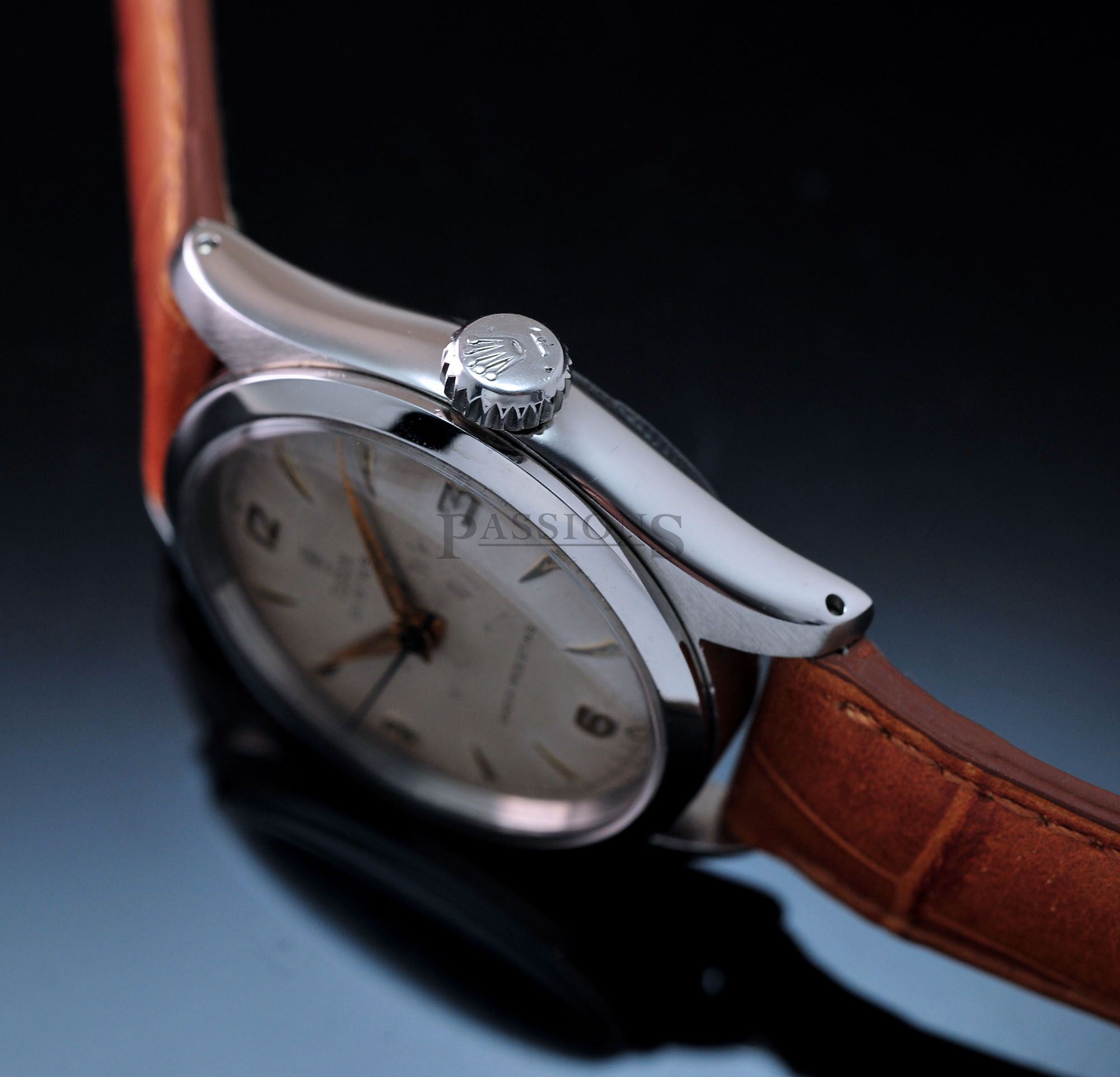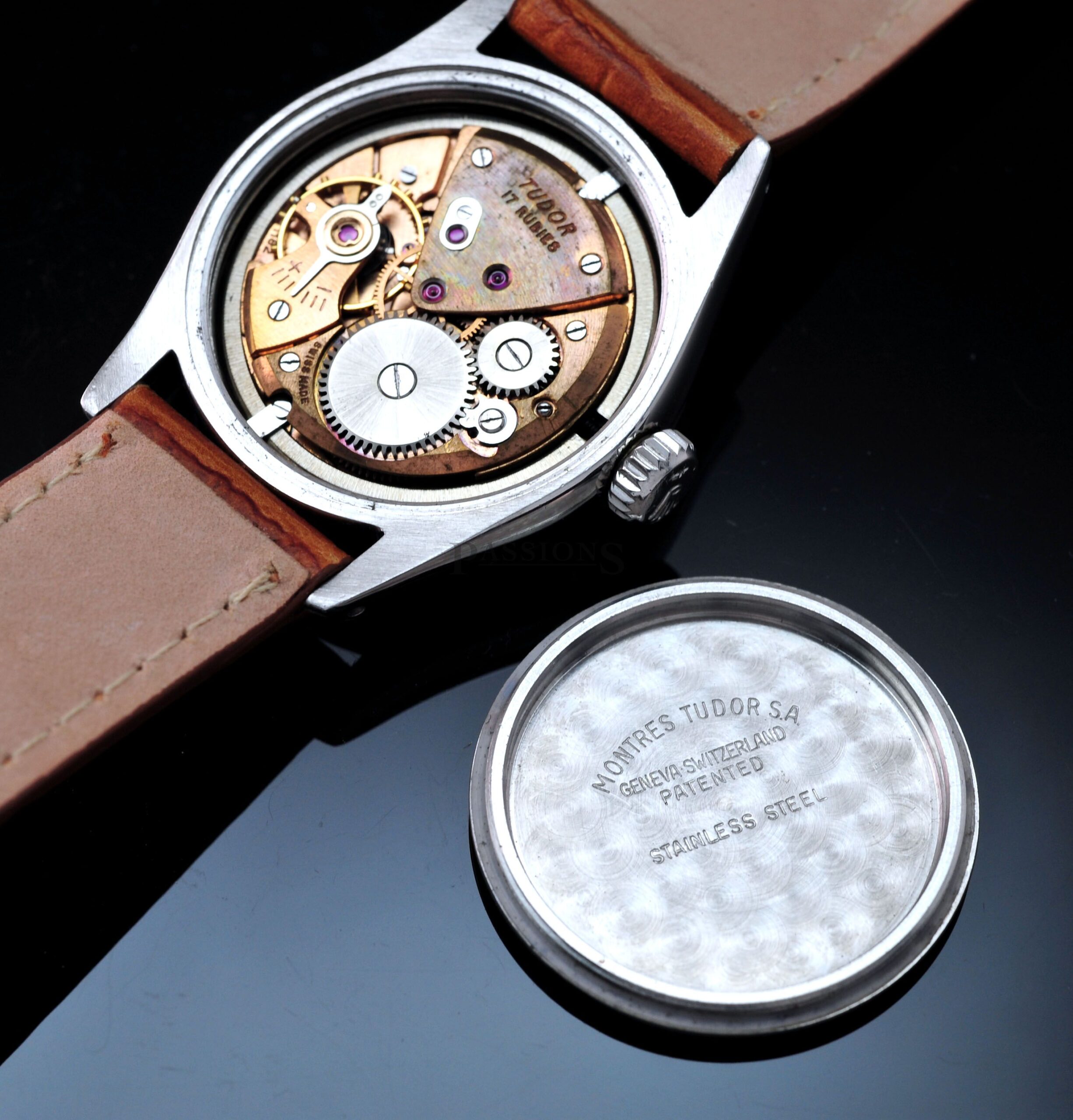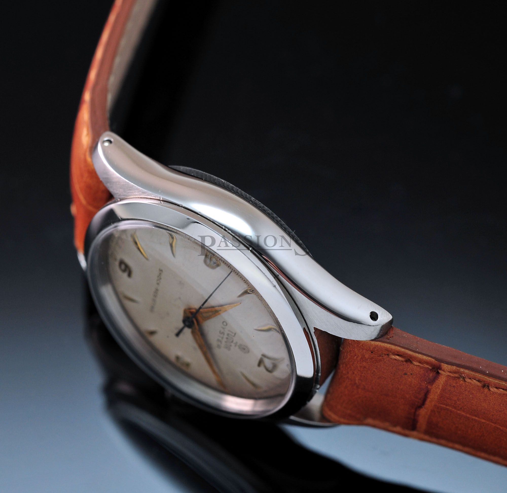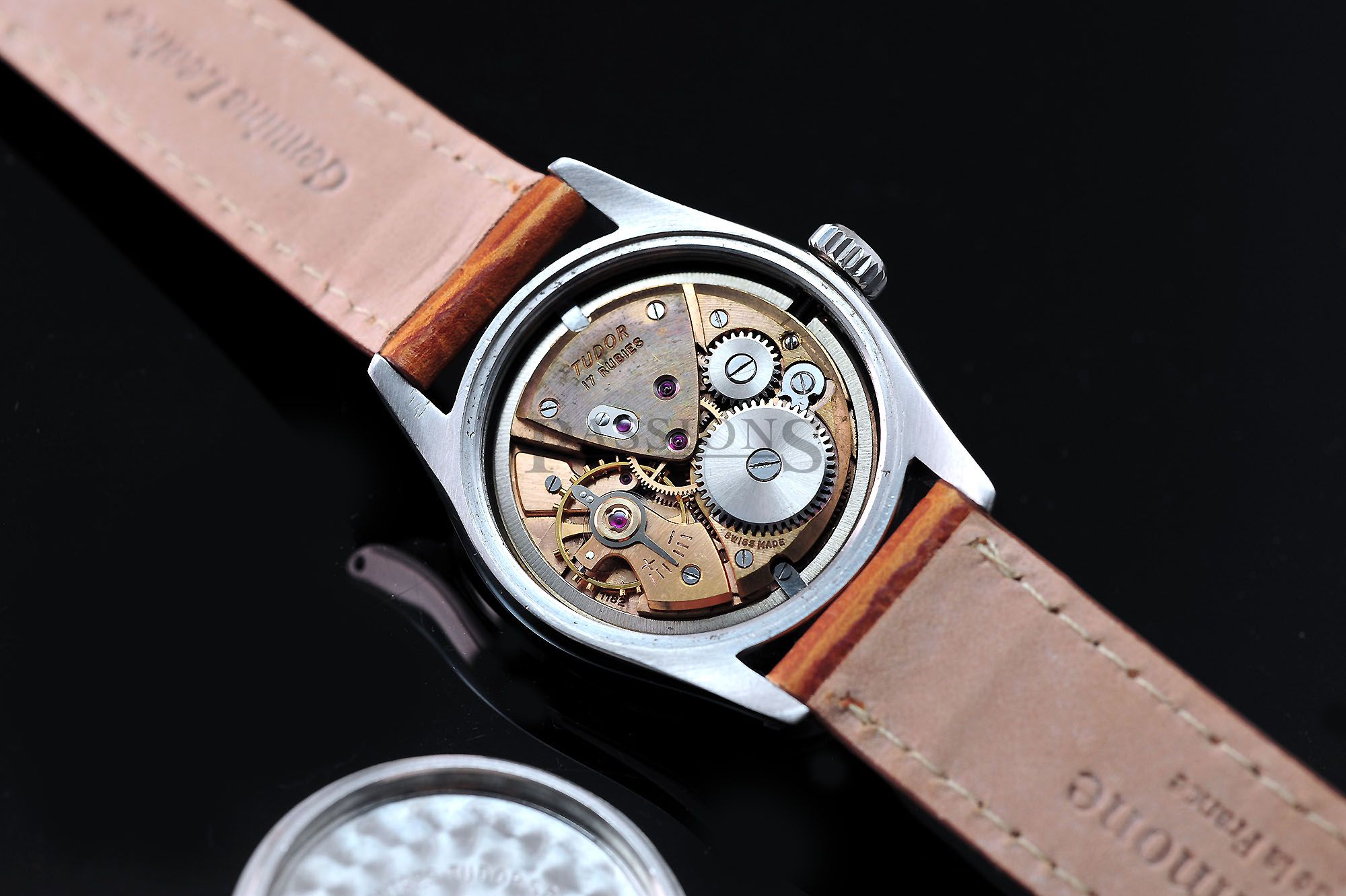This is a very charming little Tudor Oyster dating back to early 1950s. The original dial has aged beautifully with a vignette look and punctuated by embossed gold Arabic numerals that filled the quarters like a Rolex Explorer. It is signed with the coveted Tudor rose in small logo. The case has been polished and remains thick throughout. The inner back cover is stamped Montres Tudor S.A.